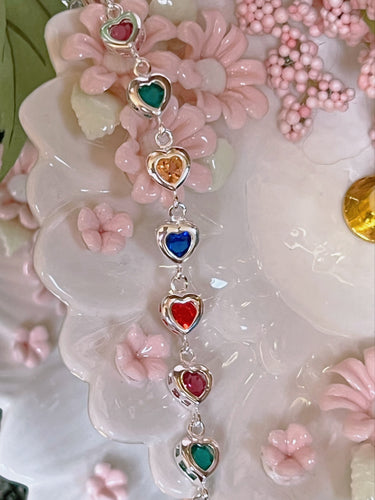 Multicolored heart link charm bracelet